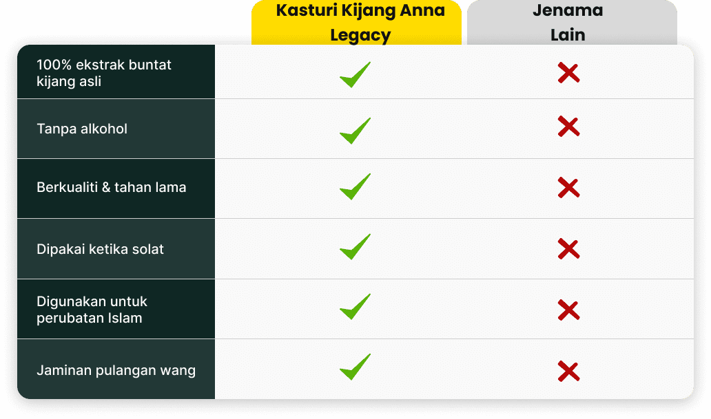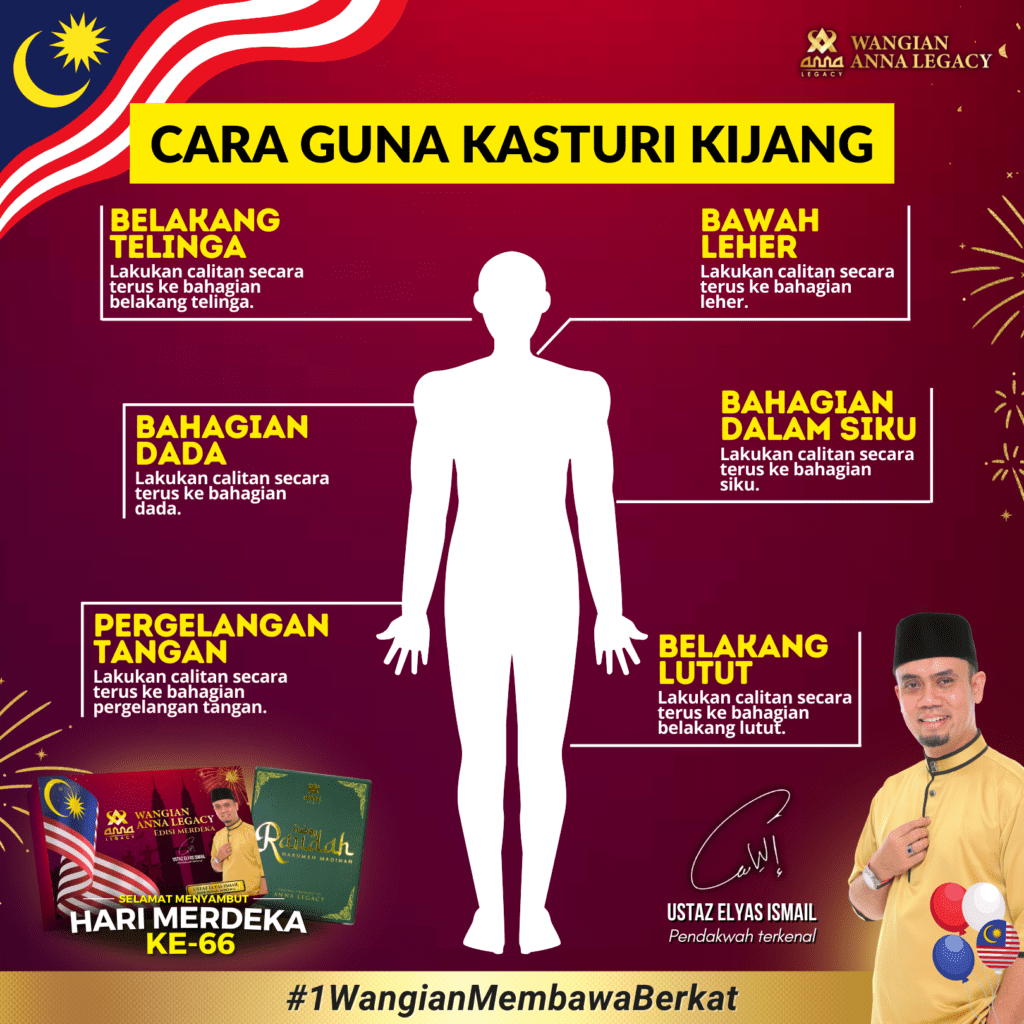Kasturi adalah wangian dicintai Rasulullah s.a.w hadirkan ketenangan & keselesaan dengan hanya satu calitan Wangian Anna Legacy